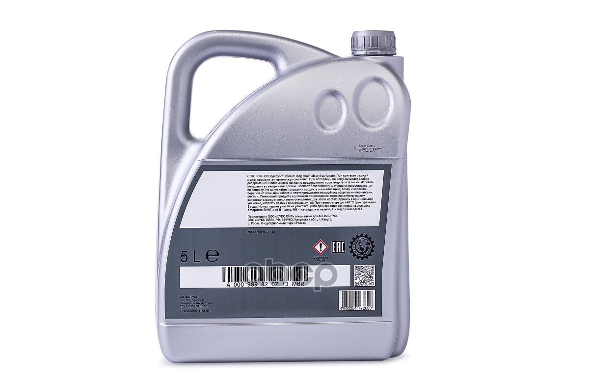 Бренд: MERCEDES-BENZ, артикул: A000989820713MBR, МАСЛО МОТОРНОЕ 229.52 5Л. |