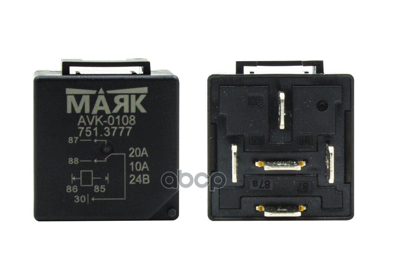 Реле 5-ти контактное для а/м МАЗ,КАМАЗ,Автобусы,трактора с кронштейном, 24В, 20/10А. Маяк AVK-0108 103608