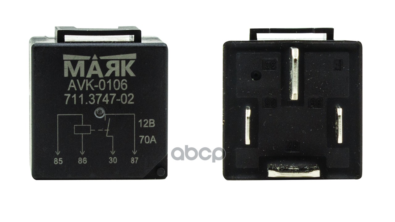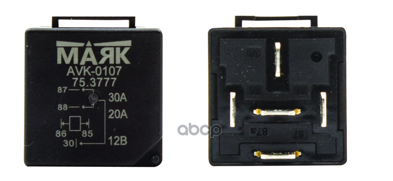 Реле 4-х контактное для а/м ВАЗ, ГАЗ, УАЗ с кронштейном, 12В, 30А. Маяк AVK-0109 103609