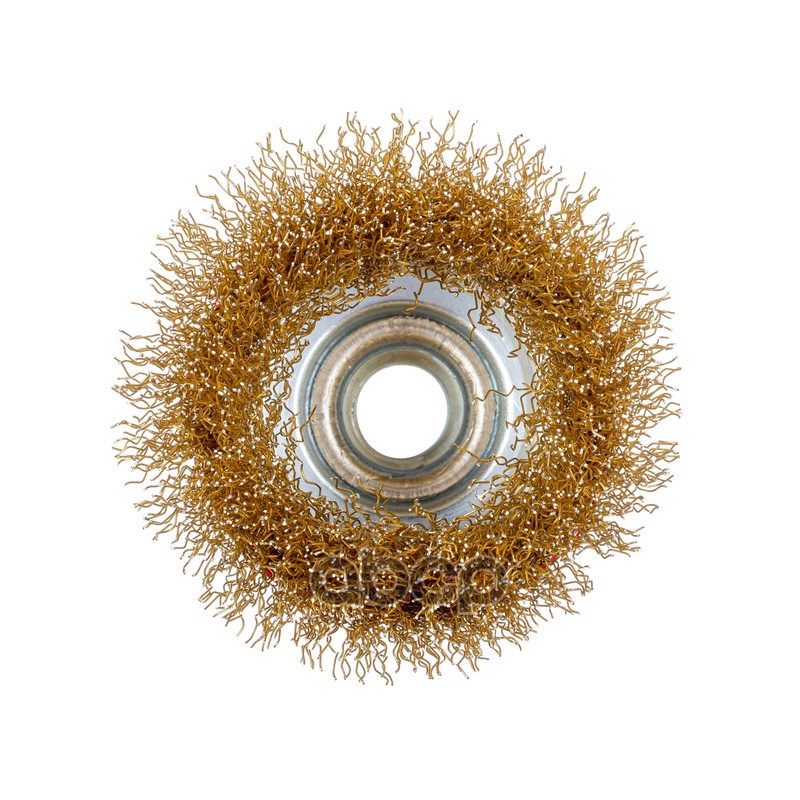 Наименование: Щетка - крацовка для болгарки торцевая 100 мм М14*2 латунированная сталь ПрофОснастка №804