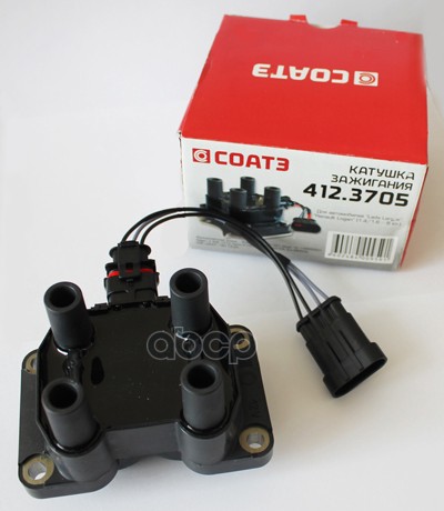 Катушка зажигания LADA Largus. RENAULT Logan, 1.4/1.6-8 кл, (12V). 412.3705 "СОАТЭ" Применяемость: Рено Логан, Лада Ларгус