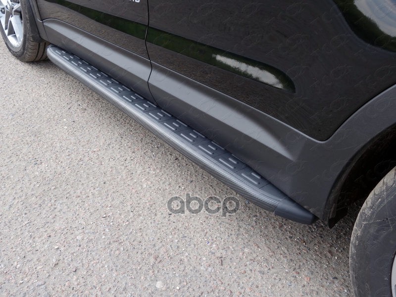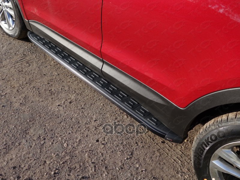 Пороги алюминиевые с пластиковой накладкой (карбон черные)1820 мм для Hyundai Sa