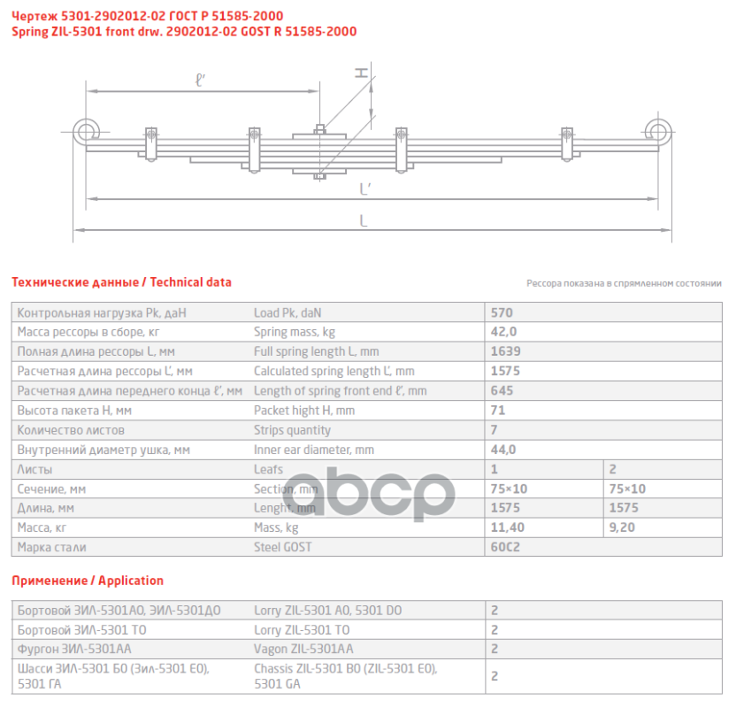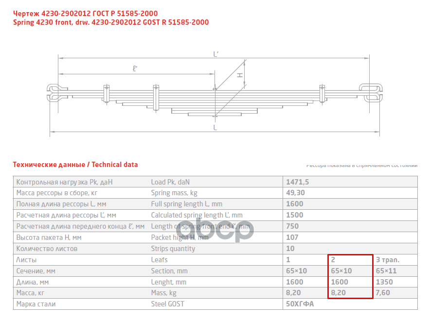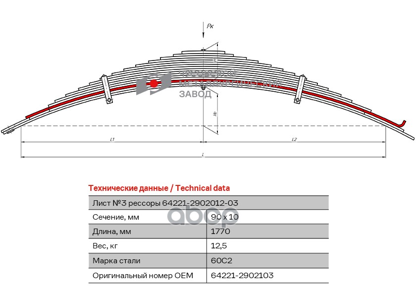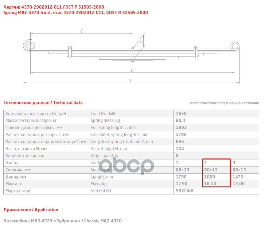 64221-2902102-05 Лист №2 Рессора передняя для МАЗ 5337, 5432, 5551 14 листов
