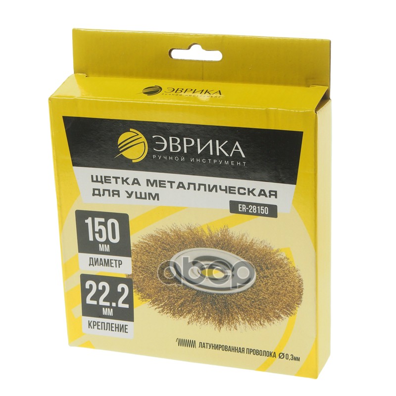 ЭВРИКА ER28150 Бренд: ЭВРИКА, артикул: ER28150, Щетка для УШМ ER-28150: 150мм 22.2мм Плоская латунированная стальная проволока 0,3мм макс. 4500 о.