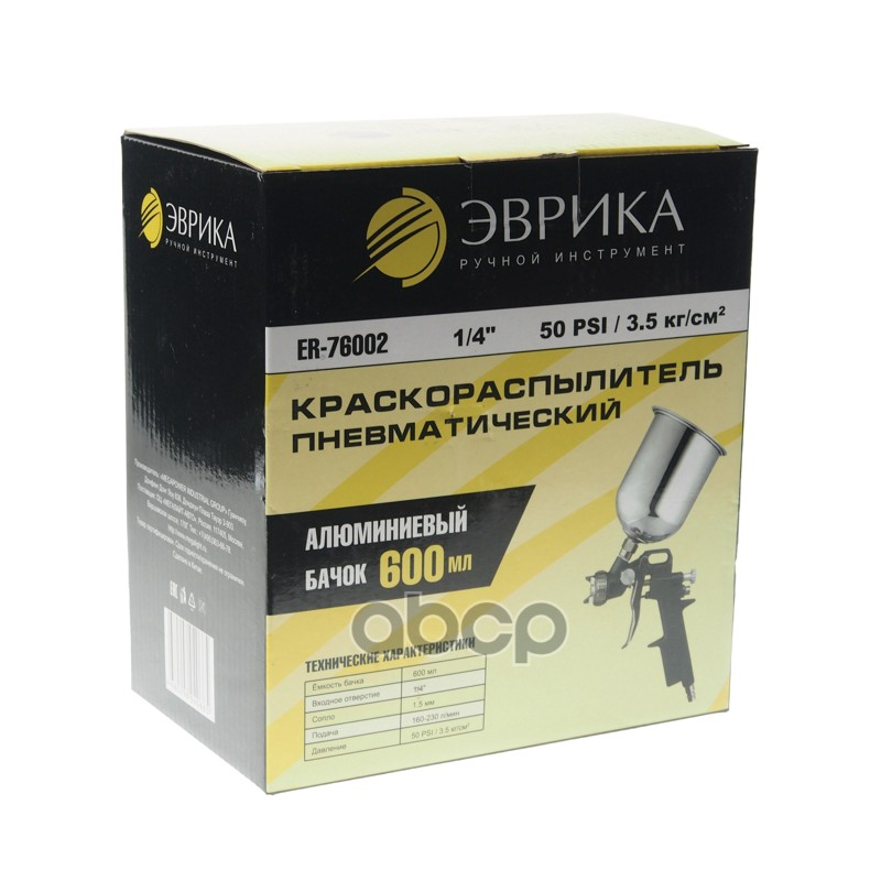 Купить запчасть ER76002 Краскораспылитель пневматический с верхним бачком 0.6л 1.5мм 160-230л/мин. 1/4" ЭВРИКА с доставкой в Эль-Монте.