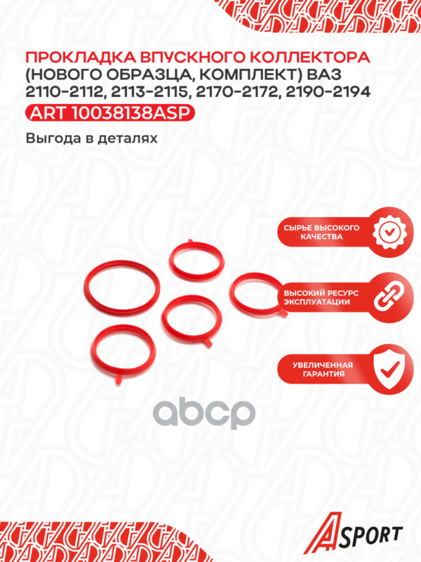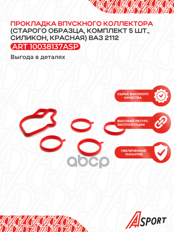 Ремкомплект прокладок впускного коллектора ВАЗ 2112 1,6 16кл. (эл. педаль) красный силикон