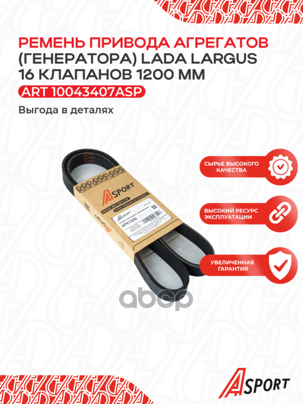 Ремень поликлиновой 6PK1200 ВАЗ Ларгус генератора без A/C, с ГУР, 16 клап.,(2626)