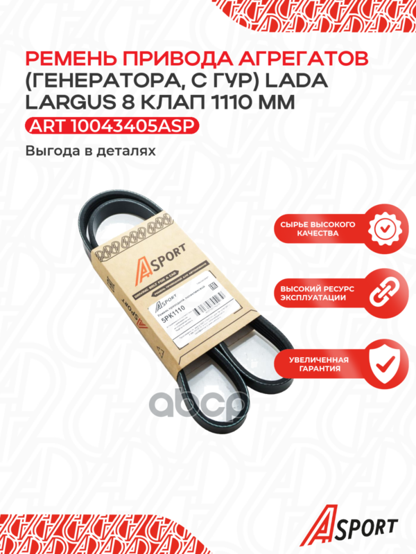 Ремень поликлиновой 5PK1110 ВАЗ Ларгус генератора без A/C, с ГУР, 1110 мм, 8 клап.(2626)
