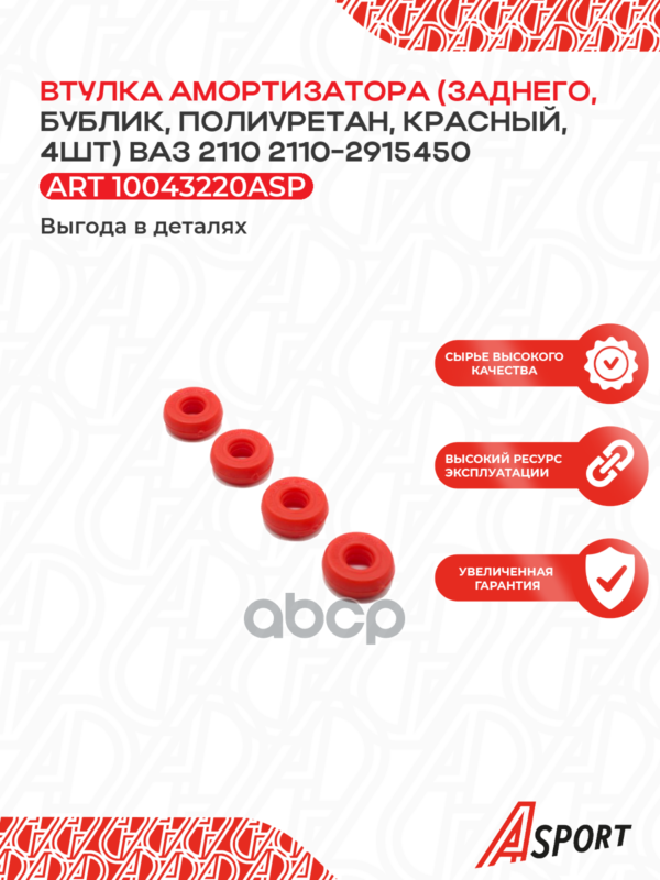 Втулка (подушка) заднего амортизатора ВАЗ 2110 (к-т 4 шт.) красный полиуретан(2626)