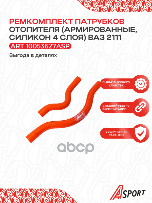 Патрубки отопителя ВАЗ 2101 силикон армированные 2 шт. A-sport красные 2101-8101200/04