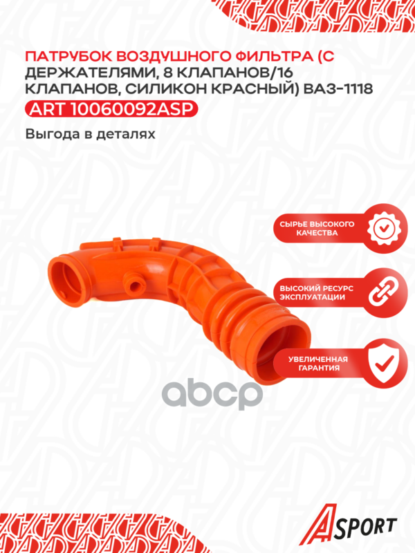 Патрубок воздушного фильтра ВАЗ 1118 (с держателями, 8кл -16кл) силикон красный(2626)