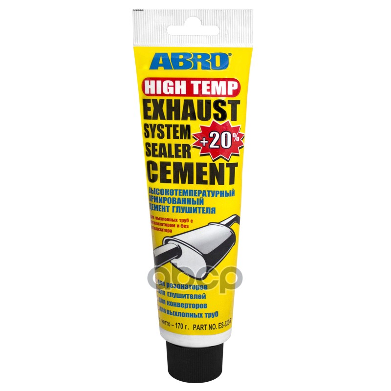Купить запчасть ES332 Средство Цемент глушителя ABRO 170 г. Описание: высокотемпературный армированный цемент глушителя.Сфера применения: предназначен для сборки герметичных соединений в выхлопных системах, устранения небольших дырок и трещин в глушителях, выхлопных трубах, с доставкой в Эль-Монте.