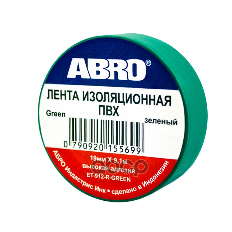 Купить запчасть ET912GR Изолента 19 мм х 9,1 м зеленая Abro (продажа по 10 шт.) ET-912-GR с доставкой в Эль-Монте.