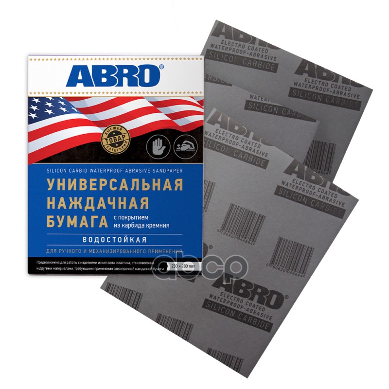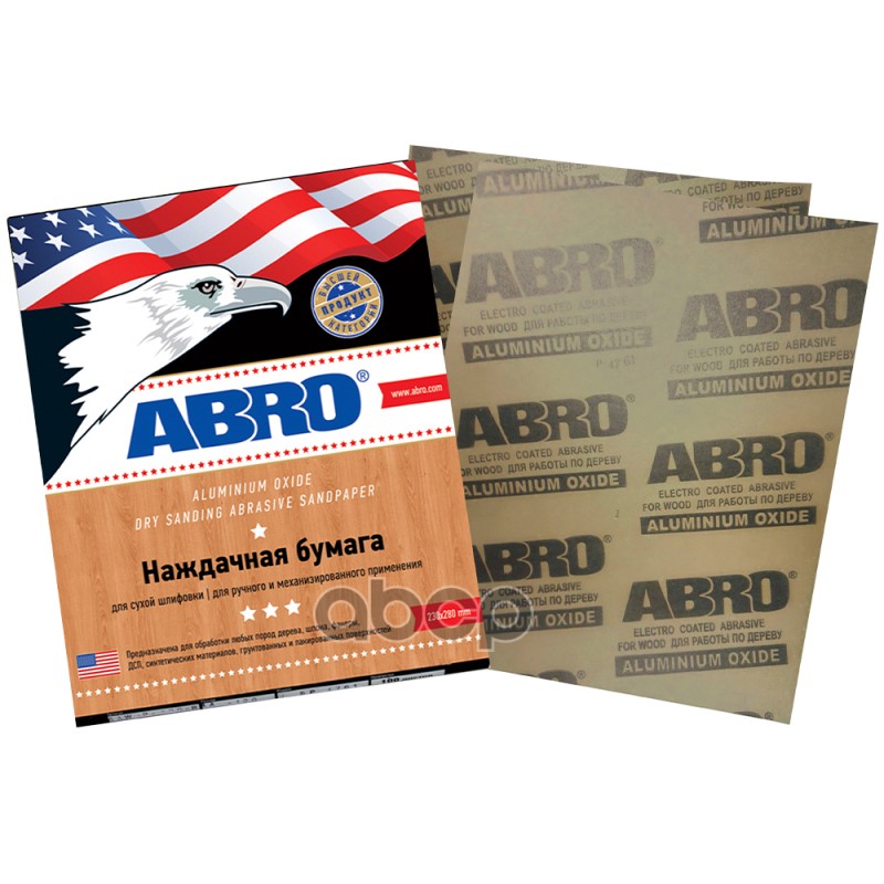 Бумага наждачная ABRO по дереву 220 230х280 мм Предназначена для обработки любых пород дерева, шпона, фанеры, ДСП, синтетических материалов, грунтованных и лакированных поверхностей.Свойства:— пылеотталкивающее покрытие на основе стеарата цинка, предотв