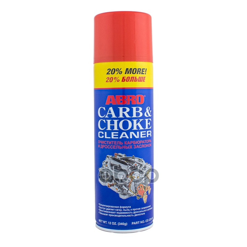 Очиститель карбюратора ABRO FOAMING пенный 283 г Описание: пенный очиститель карбюратора и дроссельных заслонок.Сфера применения: предназначен для очистки карбюратора и дроссельных заслонок.Свойства: • быстро удаляет смолистые, углеводородные и другие о