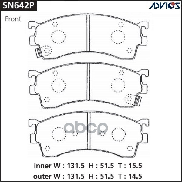 Дисковые тормозные колодки ADVICS 1A01-33-23Z / 1A07-33-23Z / 1A12-33-23Z / 1A12-33-23ZA / 1V64-33-28Z / 55110-70A00 / 55110-80000 / 55110-80010 / 55110-80020 / 55200-70810 / 55200-70811 / 55200-70812 / 55200-70AA0 / 55200-81A10 / 55200-81A31 / AY040-KE00