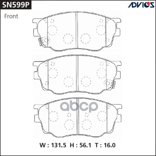 Дисковые тормозные колодки ADVICS 04465-32080 / 04465-32081 / 04465-32130 / 04491-32360 / 04491-32361 / 04491-32370 / 04491-32371 / AY040-TY014 / V91181035 / V9118A035