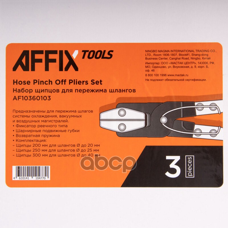 Наименование: Набор щипцов для пережима шлангов, 3 предмета AFFIX AF10360103
