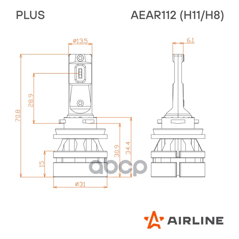 Наименование: Лампa светодиод. H11/H8/H16, 12/24В, 28Вт, 3000К(Жел), 5000Лм, для рефлект./линз. 2 шт. PLUS (AEAR11