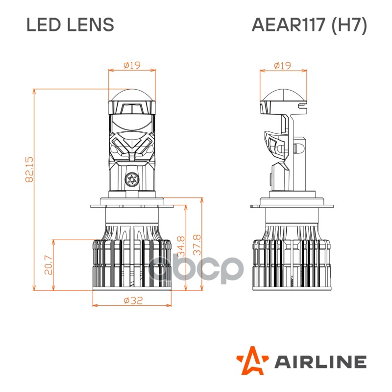 Купить запчасть AEAR117 Лампа светодиод. H7, 12/24В, 50Вт, 6500К(Бел), 6800Лм, для рефлект. 2 шт. LED LENS (AEAR117) с доставкой по России.