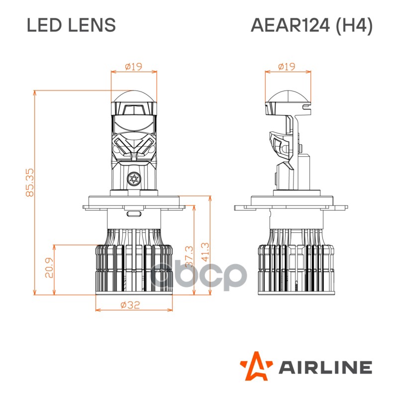Купить запчасть AEAR124 Лампа светодиодная H4 50 Вт 12/24 В 6500К 6800 Lm для рефлект. оптики 2 шт Airline LED LENS с доставкой по России.