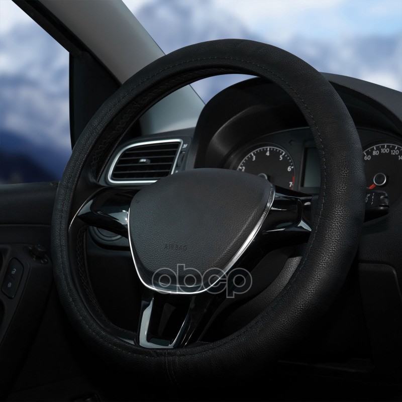 оплетка на руль гладкая кожа, черная, 37-39 см/м