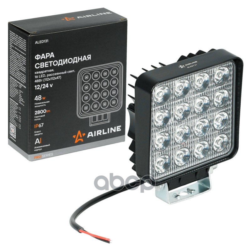 Фара светодиодная Airline квадратная 30 LED рассеян. свет 30 Вт 108 х 108 х 37 мм 12/24 В PLUS ALED101