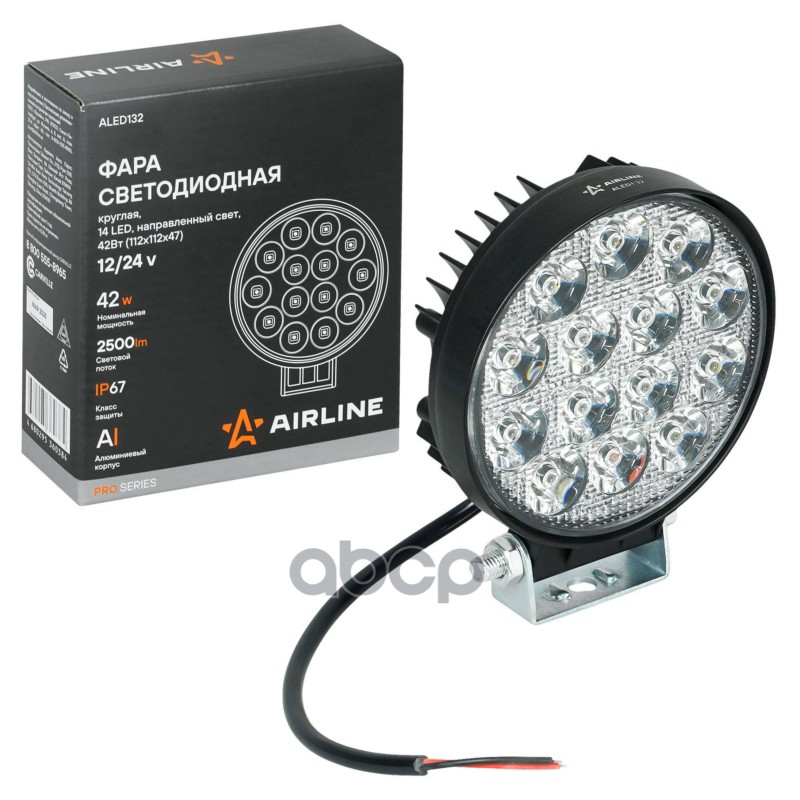 Фара светодиодная круглая, 14LED, направленный свет, 42Вт, 112x112x47мм, 12/24В, PRO