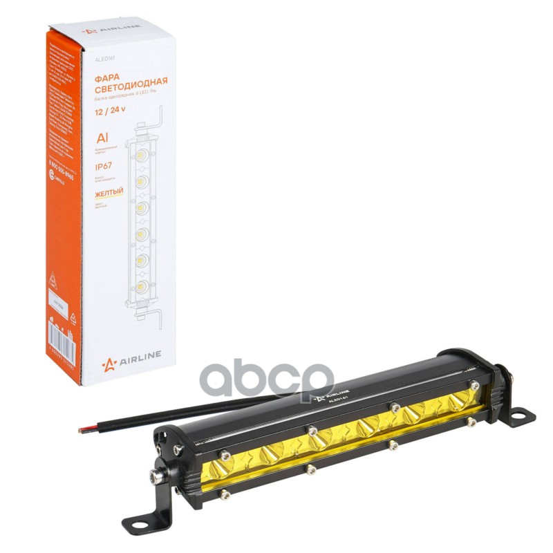 Фара (балка) светодиодная однорядная 9LED, желтый направленный свет, 13.5Вт, 264x30x47мм, 12/24В (ALED162)