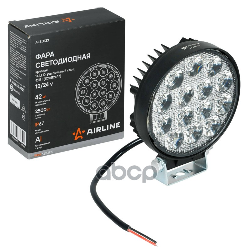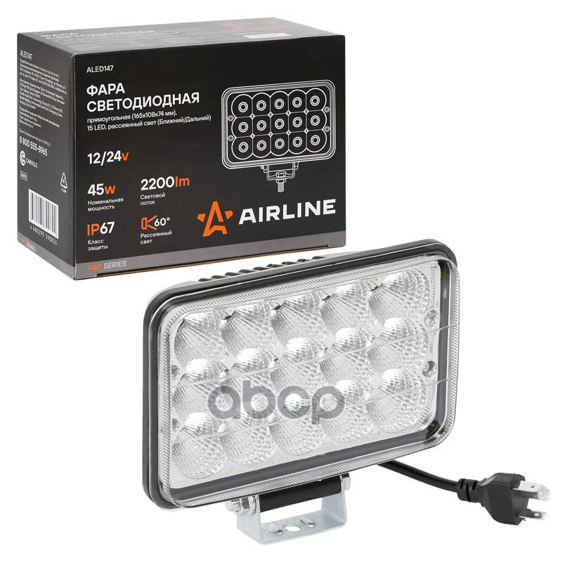 Фара светодиод. прямоугол., 15LED, рассеян. свет (Ближ./Дальн.), 45Вт, 165x108x74мм, 12/24В, PRO (ALED147)