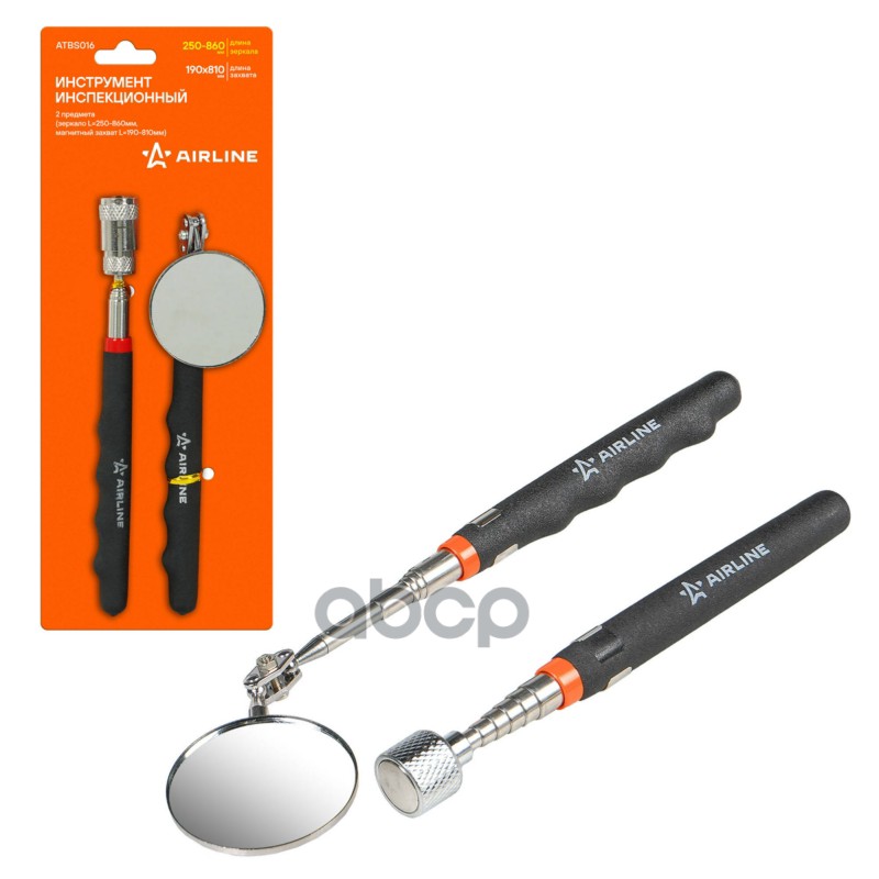 Зеркало инспекционное телескопическое с подсветкой подвижное 250-880мм d=32мм Airline ATBS009