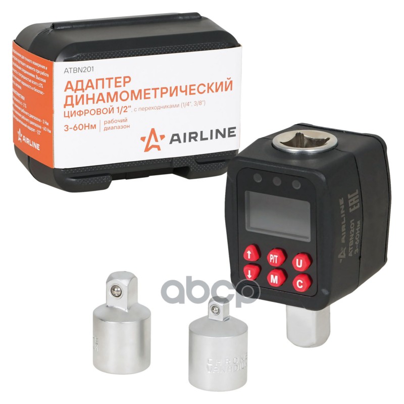 Адаптер динамометрический цифровой 1/2" 10-200 Нм, с переходниками 1/4", 3/8" Airline