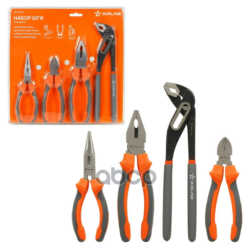 Набор ШГИ 4пр. (бокорезы, длинногубцы 160мм, клещи трубные 250мм, пассатижи 200мм) блистер (ATCF001)