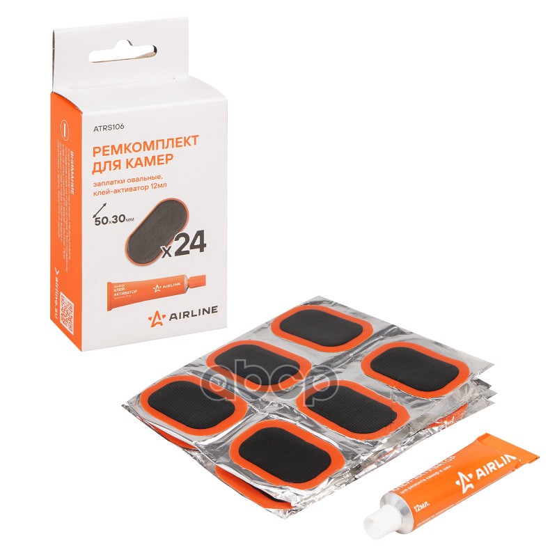 Ремкомплект для камер, заплатки овальные 50*30 мм - 24 шт., клей-активатор 12мл Airline ATRS106