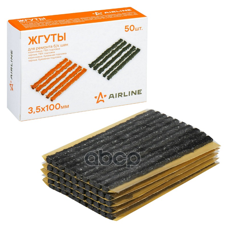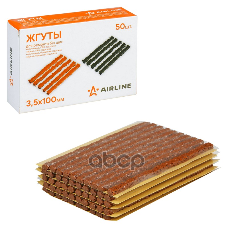 Жгуты для ремонта бескамерных шин 100 x 3,5 мм 50 шт Airline коричневые ПВХ подложка в коробке ATRS213