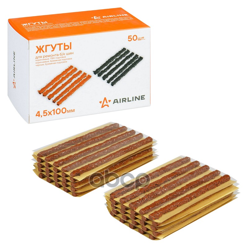 Жгуты для ремонта бескамерных шин 100 x 3,5 мм 50 шт Airline коричневые бумажная подложка в коробке ATRS201