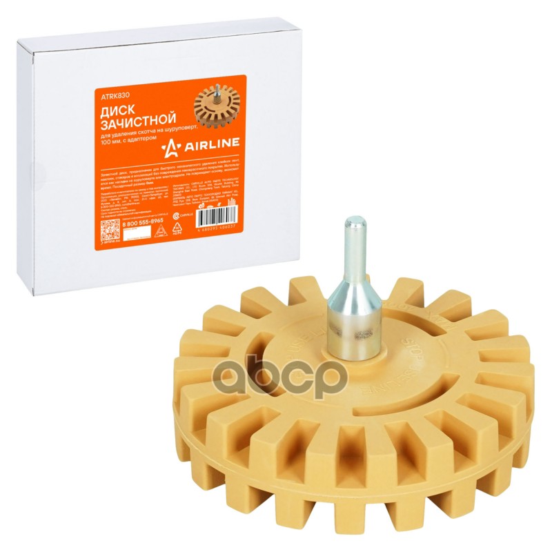 Диск зачистной для удаления скотча на шуруповерт, 100 мм, ребристый, с адаптером Airline