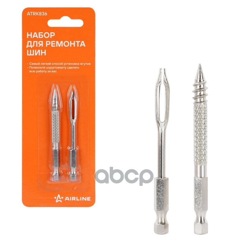 Инструмент для ремонта б/к шин для шуруповерта (сверло-напильник, шило для жгута) (ATRK836)