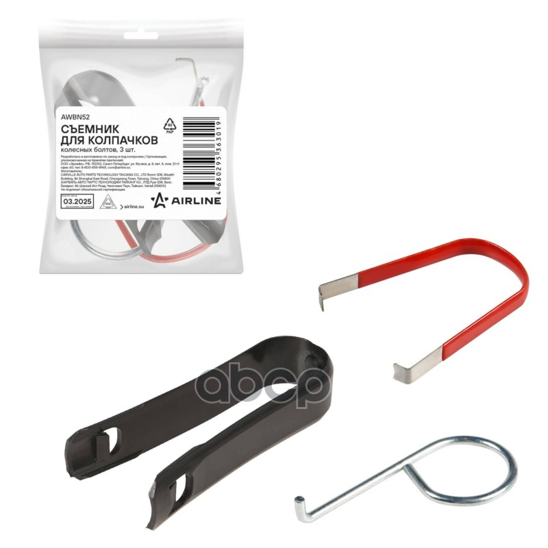Съемники для колпачков колесных болтов, 3 шт. (щипцы пластик, щипцы металл, крючок) (AWBN52)