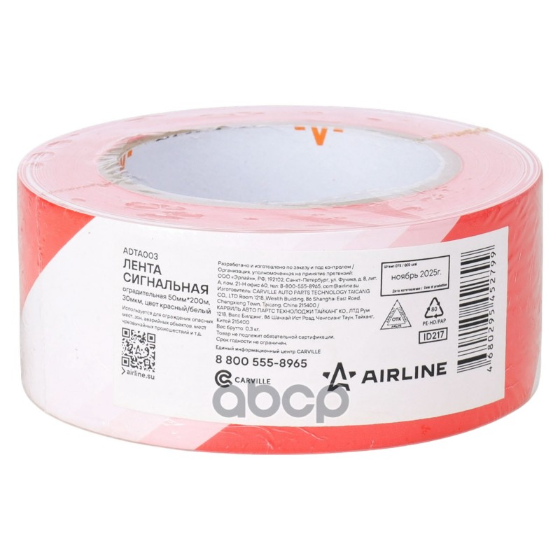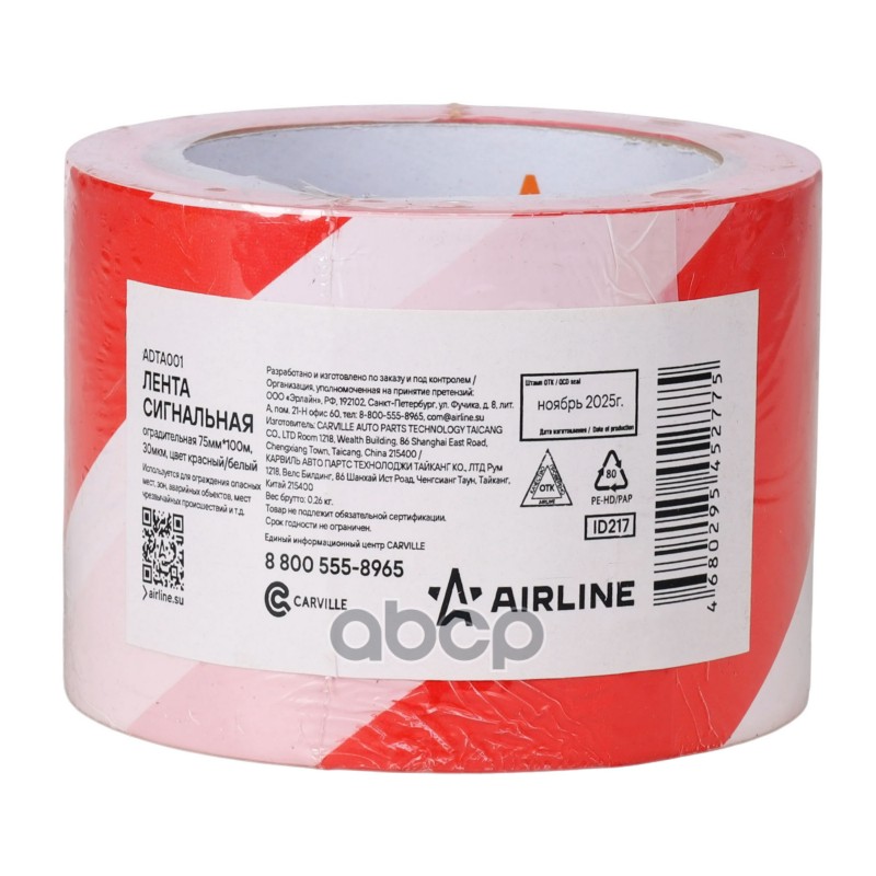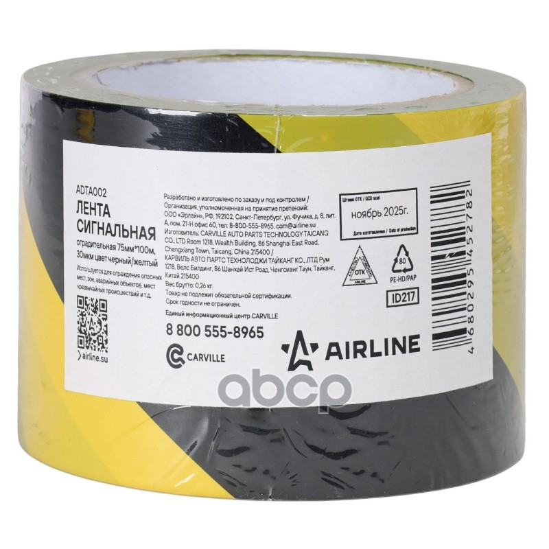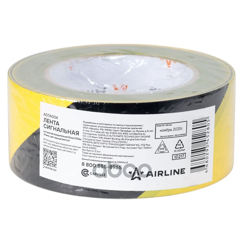 Лента сигнальная оградительная 75мм x 100м, 30мкм цвет черный/желтый(ADTA002) Airline