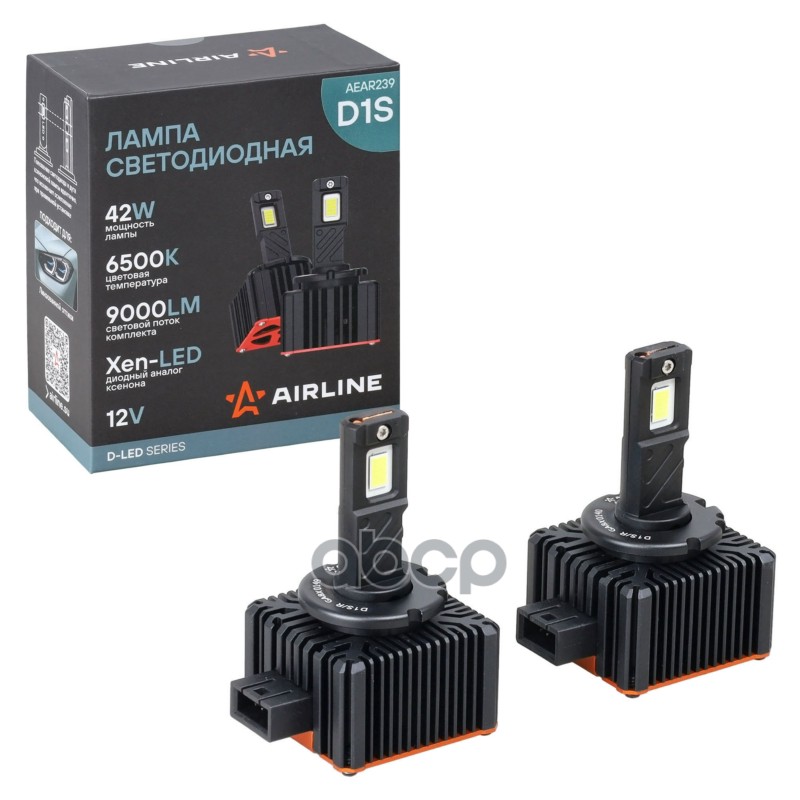 Лампа светодиод. D1S D-LED, 42Вт, 9000Лм (4500Лм x 2), 6500К, 12В, кмпл. 2 шт. Airline
