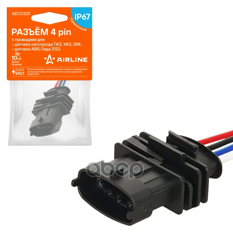 Разъём 4 pin с проводами для датчика кислорода ГАЗ, УАЗ, GM; для датчика ABS для а/м ВАЗ 2123 Airline