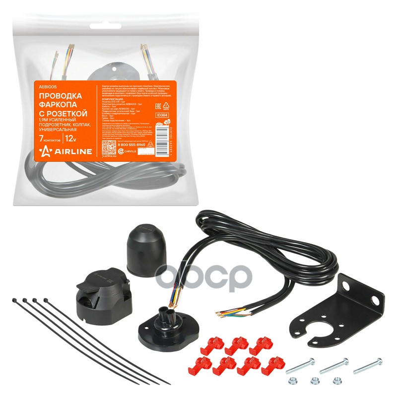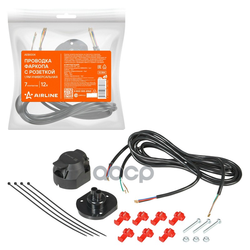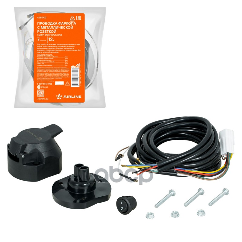 Проводка фаркопа с металлической розеткой 12В 7 контактов 1,5м универсальная Airline AEBI003