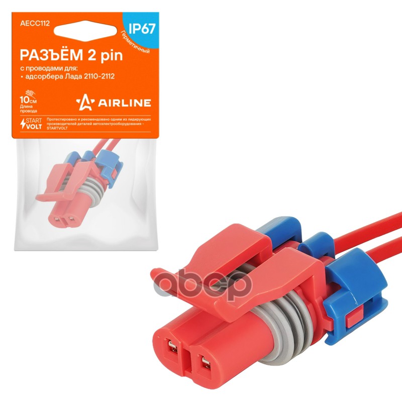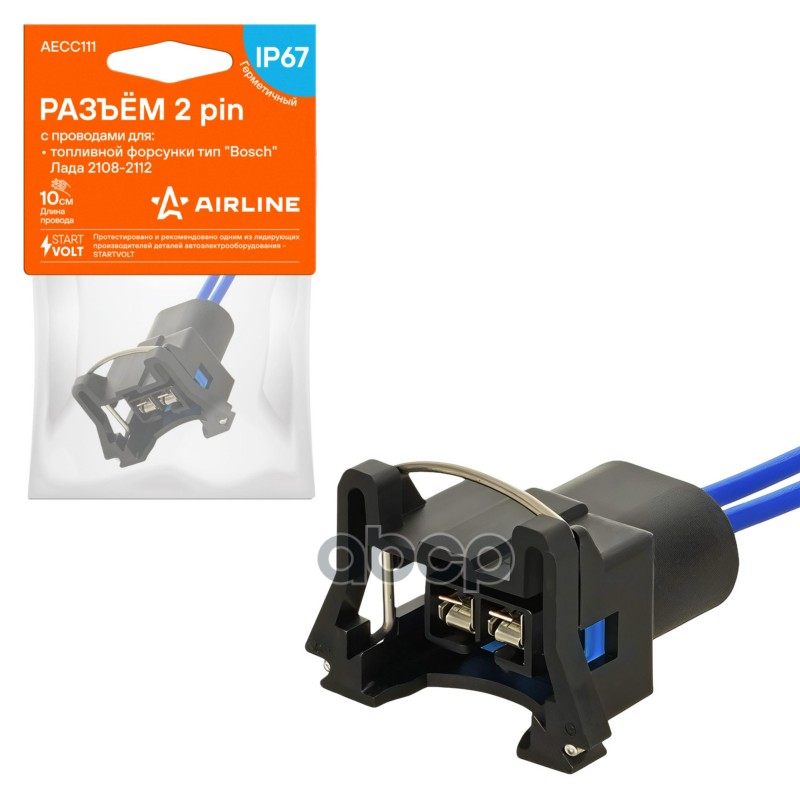 Разъём 2 pin с проводами для топливной форсунки тип "Bosch" для а/м ВАЗ 2108-2112 Airline