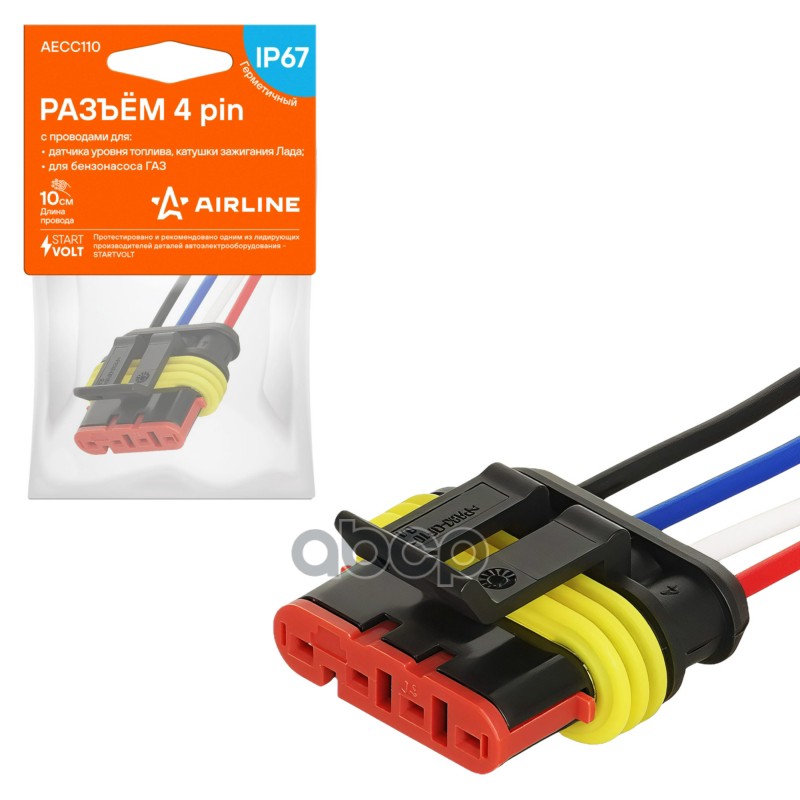 Разъём 4 pin с проводами для датчика уровня топлива, катушки зажигания для а/м ВАЗ; для бензонасоса ГАЗ Airline