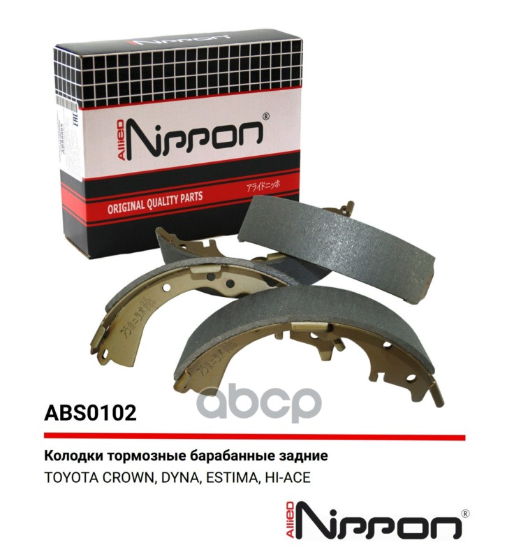 Бренд: ALLIED NIPPON, артикул: ABS0102, Колодки тормозные барабанные | зад | TOYOTA PREVIA (_R1_, _R2_) 2.4 (TCR1_) 05.1990 - 08.2000 <=> TOYOTA HIACE II WAGON (LH7_, LH5_, LH6_, YH7_, YH6_, YH5_) 2.4 D (H5G) 08.1984 - 08.1989. |