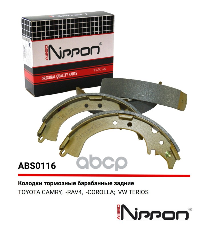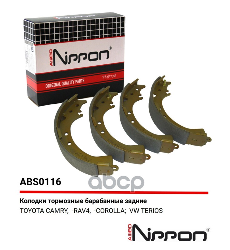 Бренд: ALLIED NIPPON, артикул: ABS0116, Колодки тормозные барабанные | зад | TOYOTA RAV 4/TOYOTA LITEACE 1.3-2.0D 81-99. |