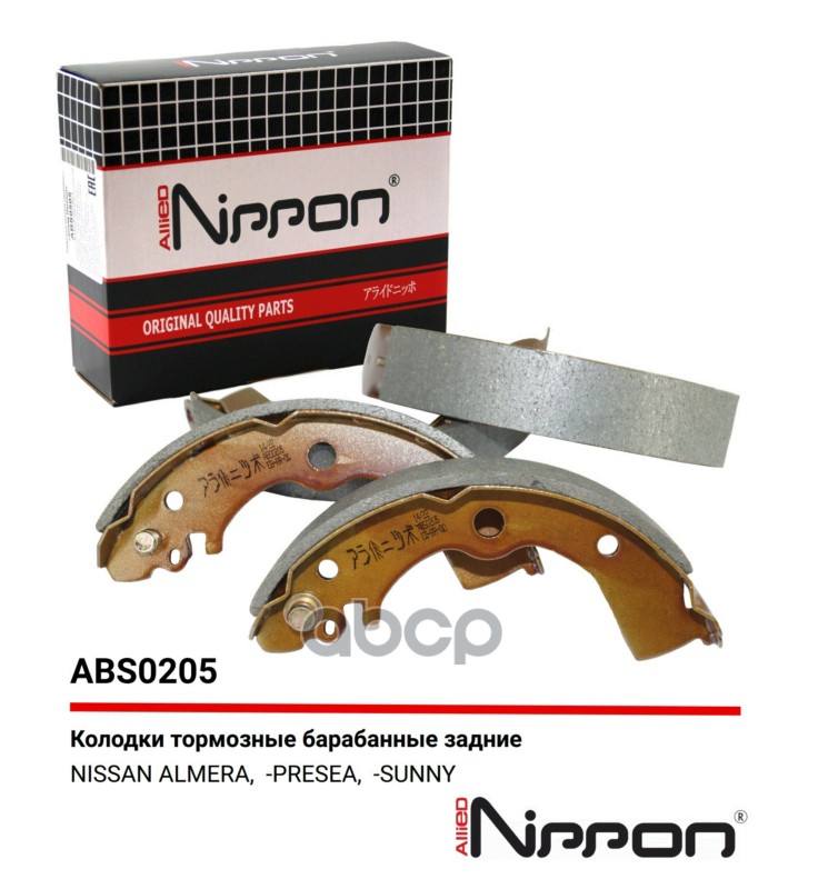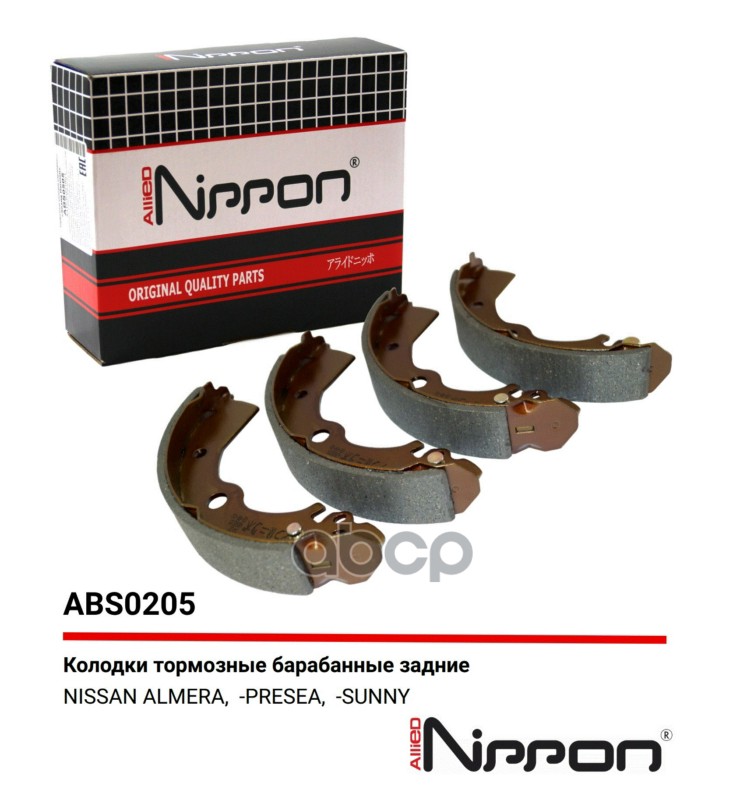 Бренд: ALLIED NIPPON, артикул: ABS0205, Колодки тормозные барабанные | зад | NISSAN SUNNY,WINGROAD,ALMERA,AD,PRESEA FN-1185;44060-50Y25;FN-1185;NS2002;GF 1404;AKS-1185;BP53124;S 56 506;91045300;GS8556;BS22185;FN1185;0 986 487 578;8913;AKS-1185;BB5121;BK-4035;FSB412;GS01185;J3501042;J3501045;K11. |