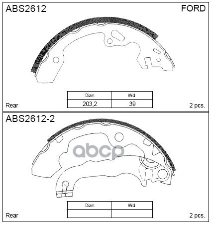 Купить запчасть ABS2612 Колодки тормозные барабанные | зад | FORD FOCUS II SALOON (DB_, FCH) 2.0 04.2005 - 07.2011 <=> FORD FOCUS II (DA_, HCP) 2.0 07.2004 - 09.2012 с доставкой по России.