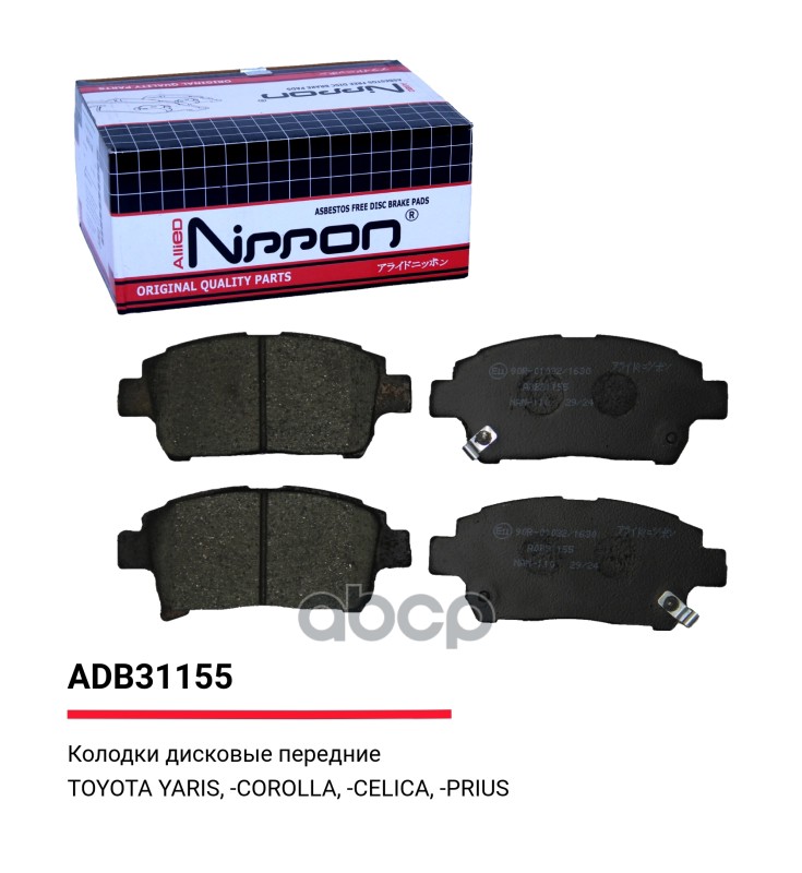 Колодки тормозные дисковые | перед | TOYOTA COROLLA SALOON (_E12_) 1.6 VVT-I (ZZE121_) 10.2001 - 07.2007 <=> TOYOTA COROLLA (_E12_) 1.6 VVT-I (ZZE121_) 01.2002 - 12.2006 ADB31155